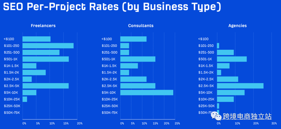 根据这些统计数据,SEO机构收取的每个项目费用平均是SEO自由职业者的4倍以上。
